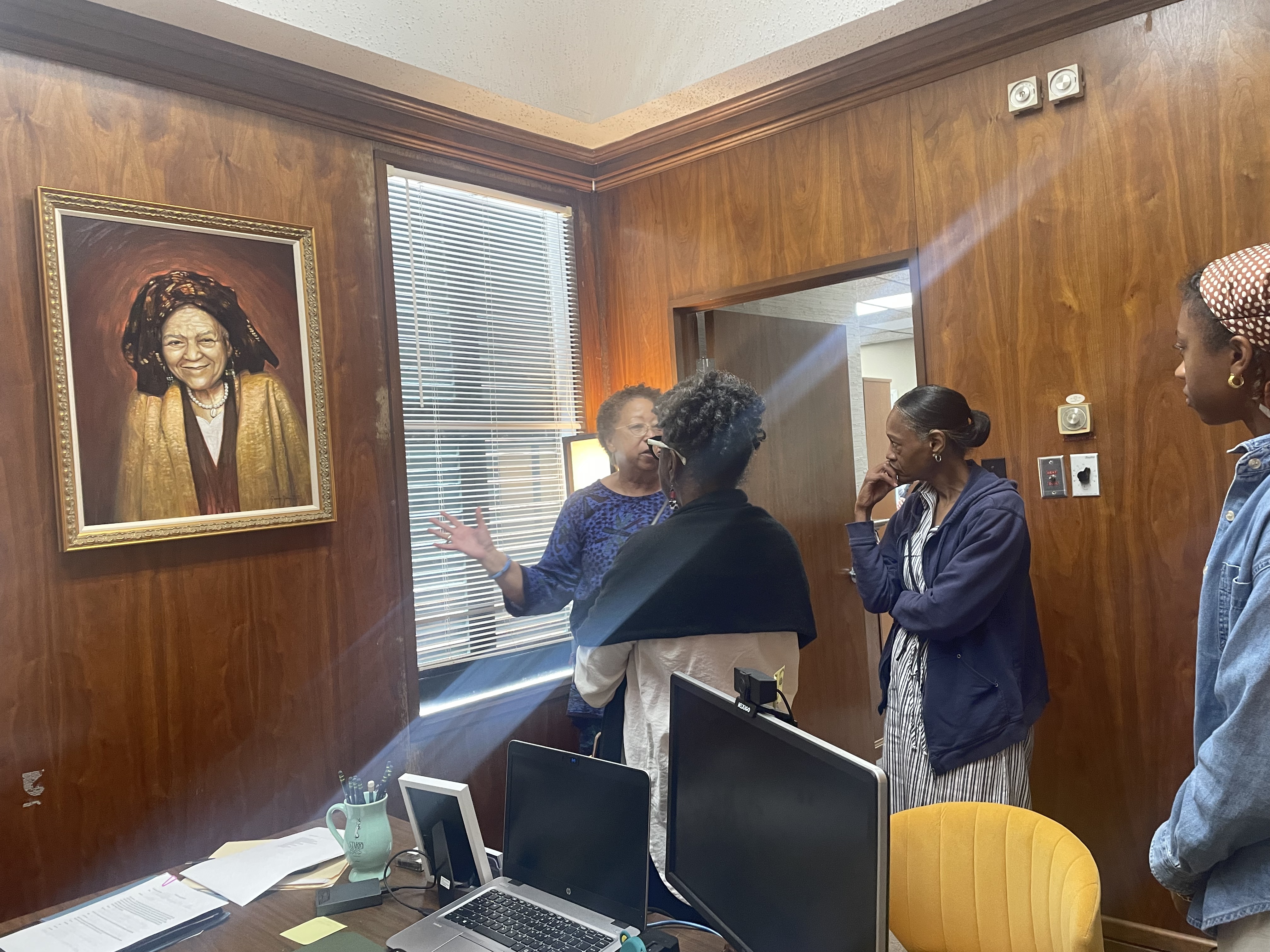 In August 2024, a group of 25 scholars from around the state of Louisiana, including Drs. Wendy Gaudin, Eva Baham, Ibrahima Seck and Jessica Marie Johnson, visited the Iberia African American Historical Society Center for Research and Learning. They had an opportunity to tour The Shadows-on-the-Teche. While at the IAAHS Center for Research and Learning they had the opportunity to explore some of the items in the collection.